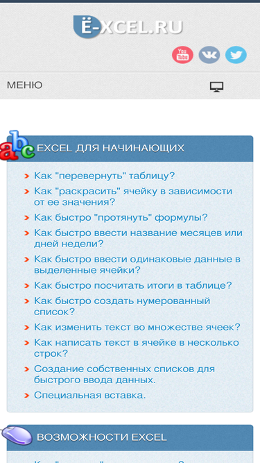 88%интернет-справочник/руководство пользователей табличного редактора microsoft excel. познавательный интернет-ресурс о возможностях и способах работы в среде табличного редактора microsoft excel. работа с таблицами, данными, формулами и функциями. правила построения графиков и диаграмм. создание формул и пользовательских форматов.