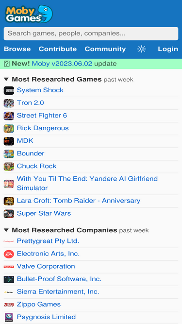 90%The oldest, largest and most comprehensive video game database covering 298,823 games and 1 million game industry professionals.
