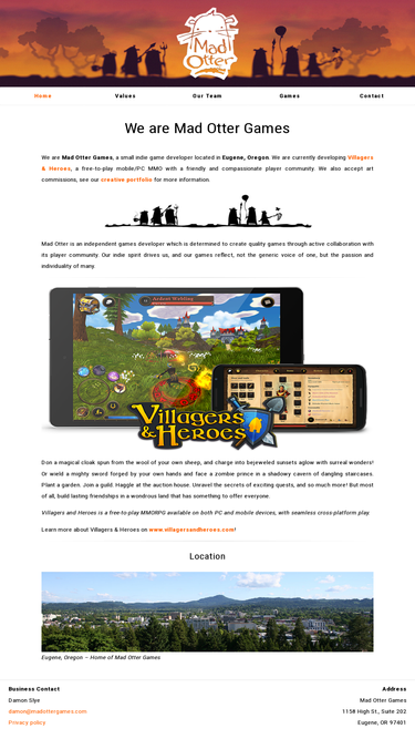 99%we are mad otter games, a small indie game developer located in eugene, oregon. we are currently developing villagers & heroes, a free-to-play mmo with a friendly and compassionate player community.