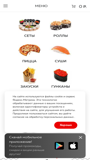 100%Суши, роллы, пицца, десерты и напитки. Большой выбор. Меню на любой вкус. Готовим из самых свежих продуктов. Акции. Скидки. Доставка на дом и в офис.