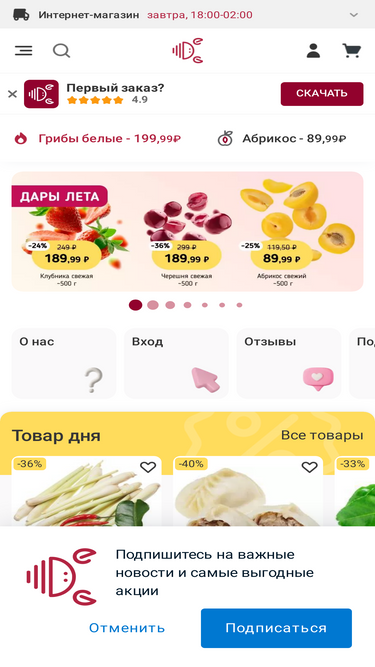 74%продуктовый интернет-магазин деликатеска осуществляет продажу продуктов питания, включая деликатесы премиум качества по выгодной цене. бесплатная доставка продуктов на дом по москве на сумму от 3000 рублей