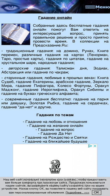 87%гадания на игральных картах, картах ленорман и таро. более тысячи оракулов. нумерология, сонники и гороскопы.