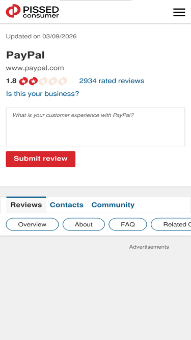 PayPal Canada has 289 reviews (average rating 2.0). Consumers say: Two payments with the same transaction number, Cant get any help with getting back in to my paypal and it sucks i locket out