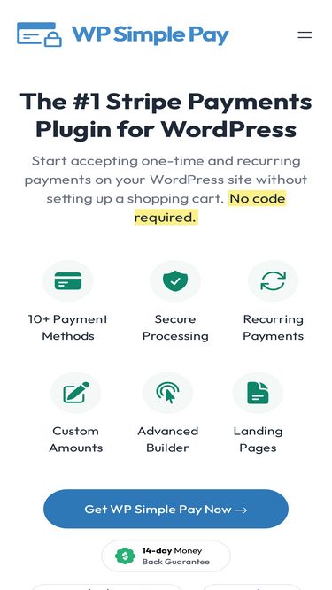 100%With WP Simple Pay, you can accept 13 payment methods in currencies relevant to your target audience to increase conversions and reduce churn.
