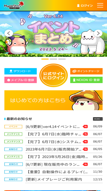 最新情報をチェックしよう。運営チームからのお知らせです。 育てて、しゃべって、協力して、冒険する! みんなのオンラインRPG「メイプルストーリー」の公式サイト。