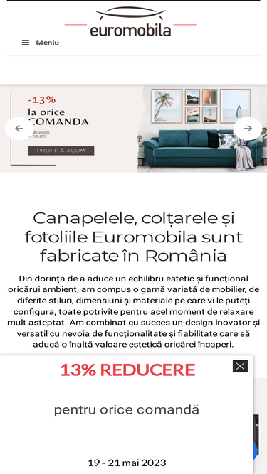 95%EUROMOBILA GHENCEAAdresa Bulevardul Ghencea Nr. 154, Centrul de mobila "DANIELLI DESIGN" Sector 6, Bucuresti Contact 0730 020 029 0724 303 029 erd.ghencea@canapele.ro Program Luni-Vineri: 10-19 Sambata: 10-16 Duminica: 10-14