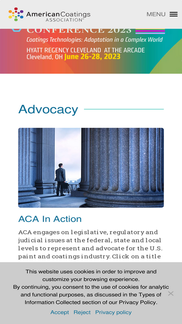100%Last Updated: April 16, 2025 Please read this Privacy Policy (“Privacy Policy”) carefully to learn how the American Coatings Association (“ACA,” “we,” “us,” ...