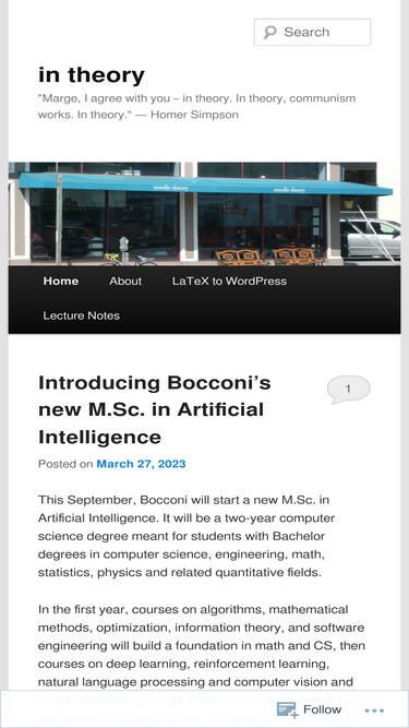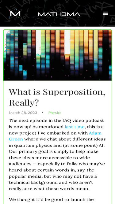 76%Math3ma is a blog about mathematics, maintained by Tai-Danae Bradley.