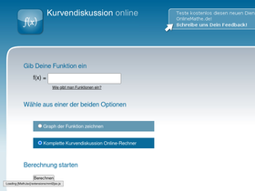77%hier gibt es alles, was das sch�lerherz begehrt! kurvendiskussion automatisch berechnen lassen, funktionen zeichnen lassen, ebenso kurvenscharen berechnen und duskutieren! es k�nnen schnittpunkte von grafen berechnet vektorrechnungen durchgef�hrt werden.