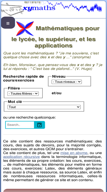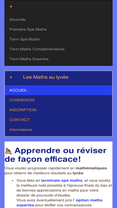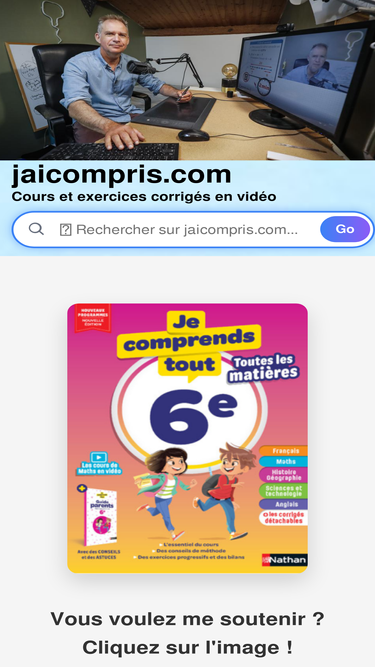 84%vous êtes un lycéen, en seconde, première ou terminale, et vous voulez progresser en mathématiques. vous recherchez des exercices corrigés parfaitement adaptés au programme. vous avez besoin de fiches de cours simples, illustrées par des exemples d'application faciles à retenir . vous voulez apprendre avec efficacité et sans perte de temps . ce site est pour vous . et il est entièrement gratuit!