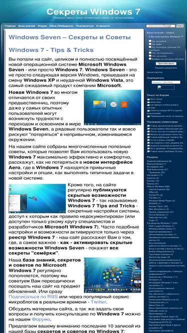 полезные советы по windows 7, тонкая оптимизация и другое