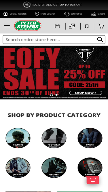 62%peter stevens motorcycles are australia's premier family-owned motorcycle stores. we have a huge range of motorcycles, riding gear, apparel, accessories, helmets, exhausts, motorcycle parts, tyres, merchandise, and gifts.