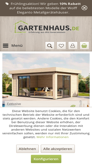 91%Erfahre mehr über Gartenhaus.com | Original für Gartenhäuser ✓ Saunen ✓ Zubehör ✓ Qualität & Erfahrung seit Jahren ► Jetzt informieren!
