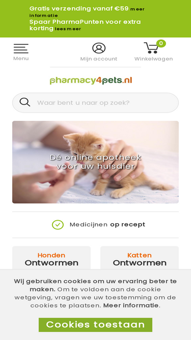71%pharmacy4pets.nl is dé online apotheek waar u terecht kunt voor alle diergeneesmiddelen, verzorgingsproducten en dieetvoeding voor uw huisdier.