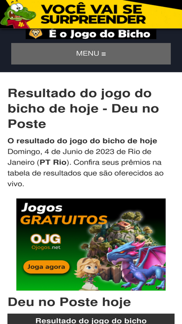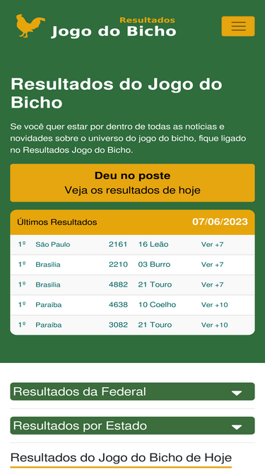 Resultado Deu no Poste atualizado de hoje com sorteios ao vivo. Veja os resultados do Jogo do Bicho de todo o Brasil e das Loterias oficiais da Caixa.