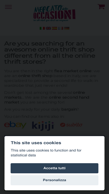 78%you are then in the right flea market online: we are an online thrift shop based in italy, we are specialized to provide a second life to walk-in wardrobe that just never ends! don’t get lost among the several online markets… we are the online second hand market you are searching for! are you ready for your daily bargain?