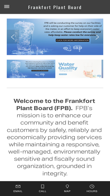 100%Frankfort Plant Board provides cable, broadband, telephone, security, electric and water for the city of Frankfort and surrounding areas. Hours 7:45-4:30pm