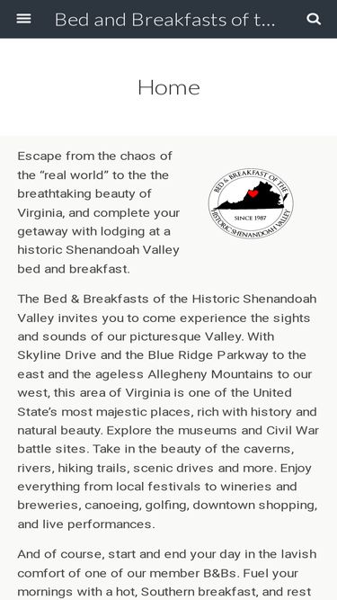 93%For a bed and breakfast in Shenandoah Valley, see Bed and Breakfasts of the Historic Shenandoah Valley, your resource for Virginia bed and breakfasts