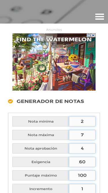 Generador de escala de notas. Escalas para profesores y estudiantes. Genere tablas en base a niveles de exigencia, notas, puntajes.