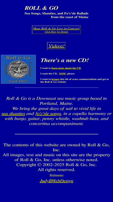 91%roll & go is a down-east sea music group based in portland, maine. we bring the days of sail to life in sea chanteys and fo'c'sle songs, in a capella harmony and with banjo and guitar accompaniment.