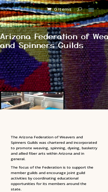 88%The Arizona Federation of Weavers and Spinners Guilds was chartered and incorporated to promote weaving, spinning, dyeing, basketry and allied fiber