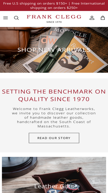 94%frank clegg, handmade leather goods are crafted in america using sustainably sourced leather. our craftsmanship is guaranteed for life. family-owned since 1970