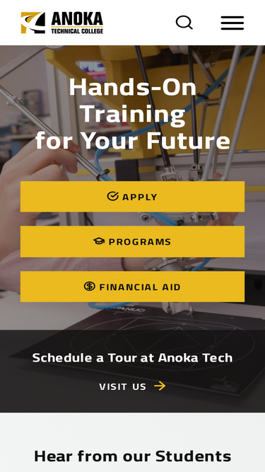 95%anoka technical college is a two-year technical college in anoka, mn that offers hands-on training in 70+ career programs.