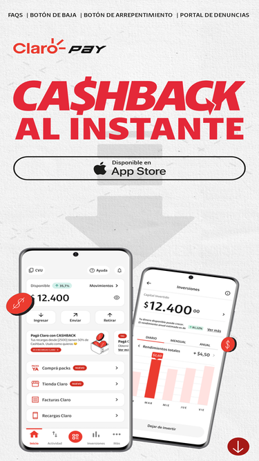 80%Usá Claro Pay, la billetera de Claro y recibí dinero extra para usarlo como quieras