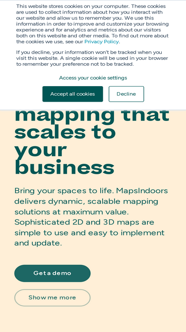 76%Discover MapsIndoors, an advanced interactive mapping solution for immersive 2D/3D maps, real-time data visualization, and AI-powered map updates. Customize your maps, manage content effortlessly, and ensure smooth indoor-to-outdoor transitions across web, iOS, and Android. Get your demo today!