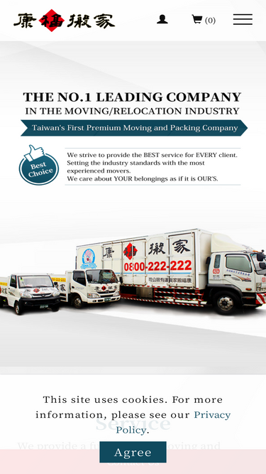 100%Kang Fu Moving is the biggest moving company in Taiwan. 200 movers and with 130 trucks of various sizes available to move all over Taiwan. English and Japanese translators are available at your service. Offices in Taipei and Taoyuan. Service line: 0800-222-222 Email: mover@0800222222.com