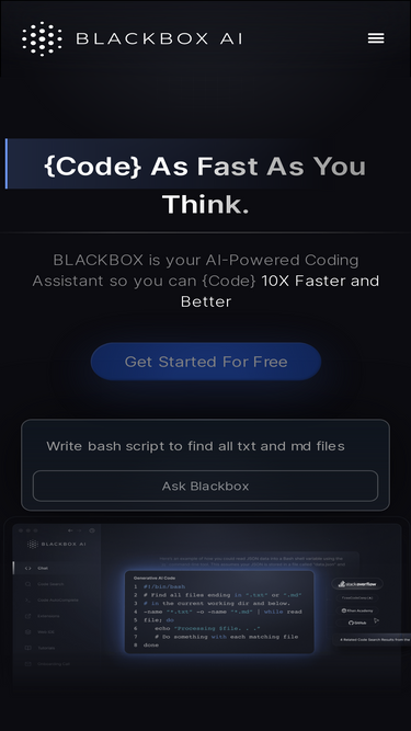 100%BLACKBOX AI - The Universal Agent Platform. Orchestrate Claude, Codex, Gemini & Blackbox agents from one interface. 30M users, 4.7M+ VS Code installs, 300+ AI models. Free to start.