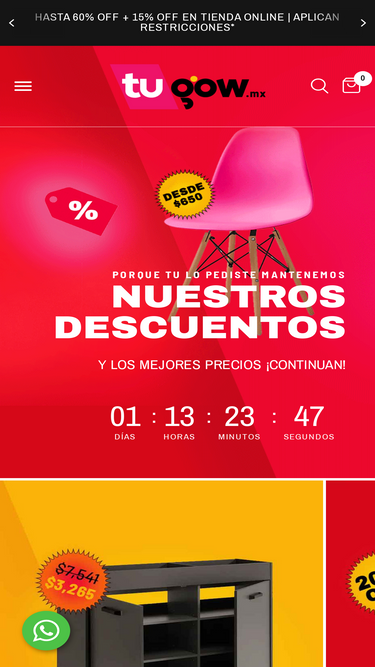 99%¡Es momento de estrenar! Ingresa a nuestra tienda de muebles y encuentra: salas modernas, recámaras completas, comedores, muebles infantiles y mucho más. ¡Ofertas todos los días!