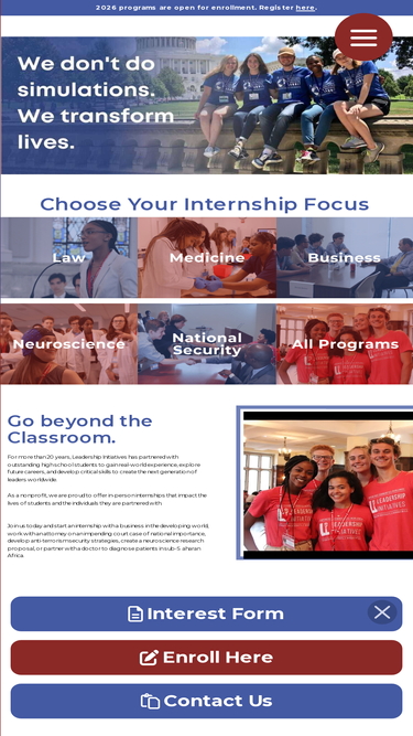 98%Join us today and start an internship with a business in the developing world, work with an attorney on an impending court case of national importance, develop anti-terrorism security strategies or partner with a doctor to diagnose patients in sub-Saharan Africa.