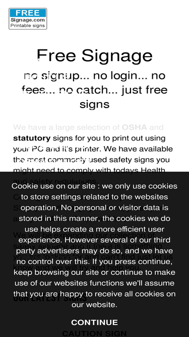 67%print free osha occupational safety and health related signs. all free no need to log in. the largest selection of free signs in pdf format for you to print and use. a totally non commercial website.