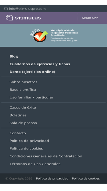 79%STIMULUS es una plataforma de estimulación cognitiva, que permite la intervención individualizada mediante el uso de las TIC con personas que presentan algún deterioro cognitivo, o primeros estadios de demencia.