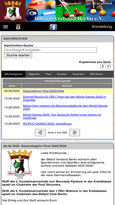 deutschlandweites billardportal - billardsport in einer neuen dimension: news und artikel, spielbetrieb, lokalsuche und community für pool billard, snooker, karambol und kegel