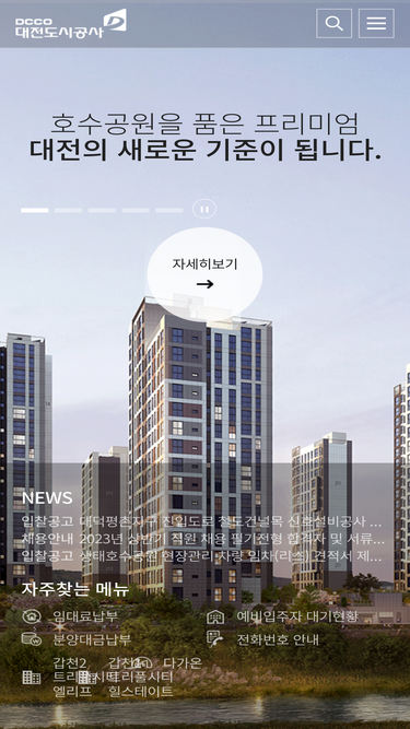 68%지역개발 및 레저, 환경사업을 통하여 시민의 주거생활 안정과 복지향상, 균형발전에 기여하는 통합정보 포털 사이트입니다.