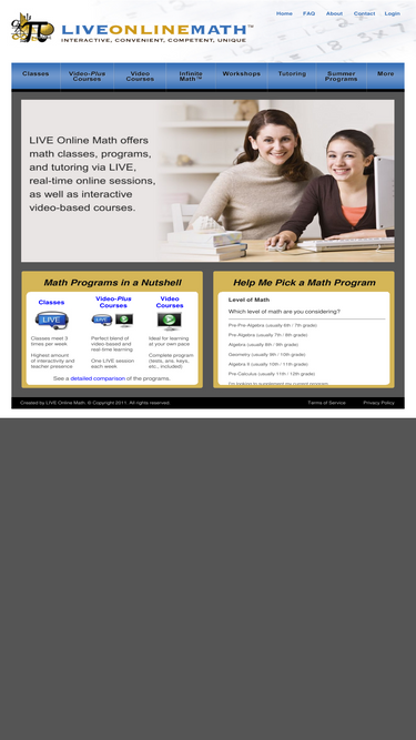 98%this site describes live online math, which offers live classes, live workshops, and live tutoring. perfect for homeschoolers! public and private schools may benefit too for very advanced or below standard students.