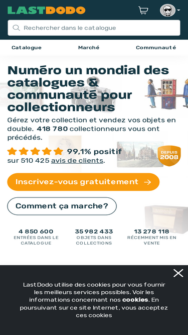 100%LastDodo est LE catalogue en ligne créé pour et par les collectionneurs. Vous pouvez y gérer votre collection en ligne, acheter et vendre des objets de collection et créer votre liste de recherche.