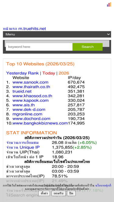 ศูนย์รวมสถิติเว็บไซต์ในเมืองไทย สารบัญเว็บไทย จัดอันดับเว็บไซต์ในเมืองไทย สถิติภาพรวมในประเทศไทย webstat thailand,web ranking