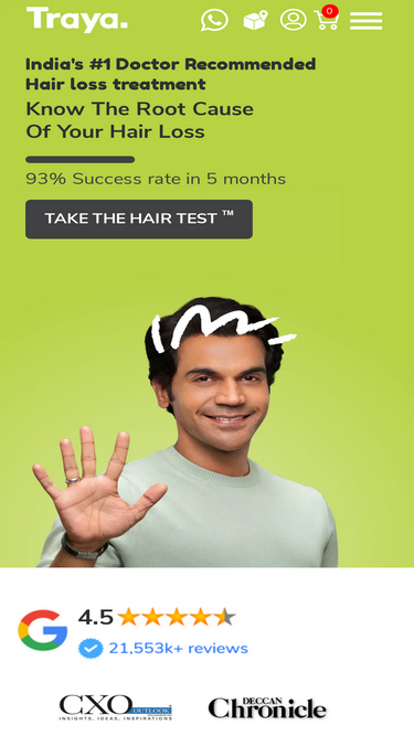 89%Traya combines dermatology, Ayurveda, and nutrition to build customised hair loss plans that target the root cause delivering assured results.