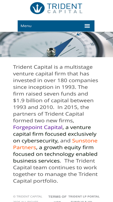 100%Trident Capital is a multistage venture capital firm that has invested in over 180 companies since inception in 1993.