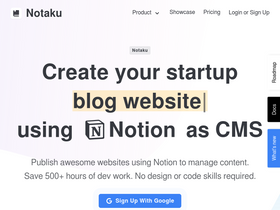 Notaku turns your Notion workspace into beautiful websites. You will be able to use Notion as a CMS and easily update your knowledge base, blog, changelog and more.