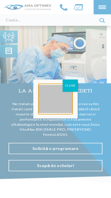 82%Primul spital privat de oftalmologie din Romania. Servicii oftalmologice complexe - Consultatii oftalmologice adulti si copii, investigatii, tratamente, operatii cataracta, operatii retina, operatii reducere dioptrii.