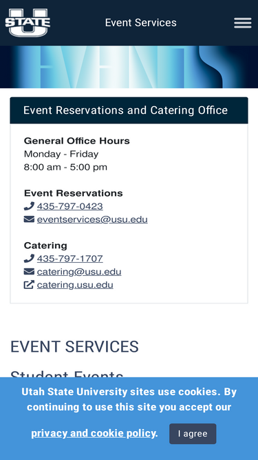 Your source for event planning at Utah State University. The Office of Events is dedicated to helping USU students, faculty, staff, and guests of the University be more efficient and strategic when planning, managing, and executing events.
