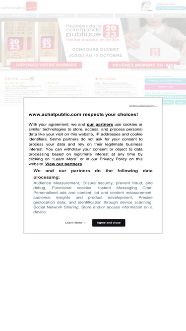 leader en france dans le domaine des services aux acheteurs publics, achatpublic.com permet à plus de 22 000 responsables de la commande publique de collaborer efficacement avec 125 000 fournisseurs. le portail achatpublic.com couvre toute la chaîne de l’achat public : sourcing - rédaction - profil acheteur - procédure - suivi des actes - archivage