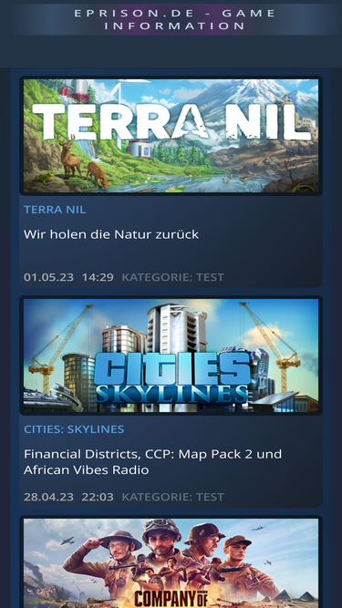 81%Der RSS Feed von ePrison.de wird euch jederzeit über aktuelle News, User News, Artikel, Bilder und neue Spiele auf [b]ePrison.de[/b] informieren. Ausgelesen werden die letzten 25 neuen Headlines mit dem Infobereich, Kategorie, Spiel und Datum.