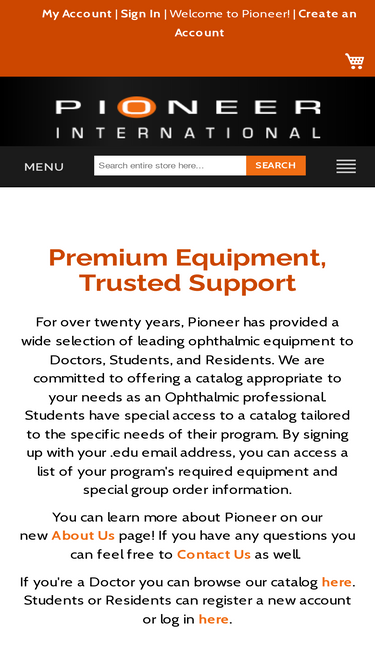 90%for over two decades, pioneer international has been an industry leader in the distribution of ophthalmic products to the student market.
