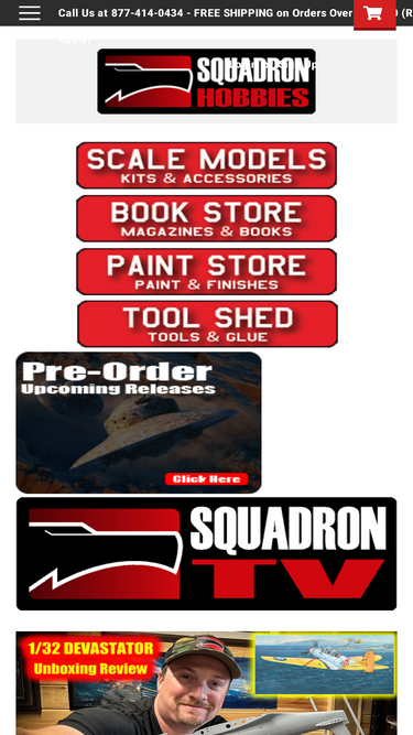 Squadron offers scale model kits made of plastic, resin and more. Categories include aircraft, armor, ships, sci-fi, cars, tools, paint, books and more! Everything needed for your hobby modeling room!