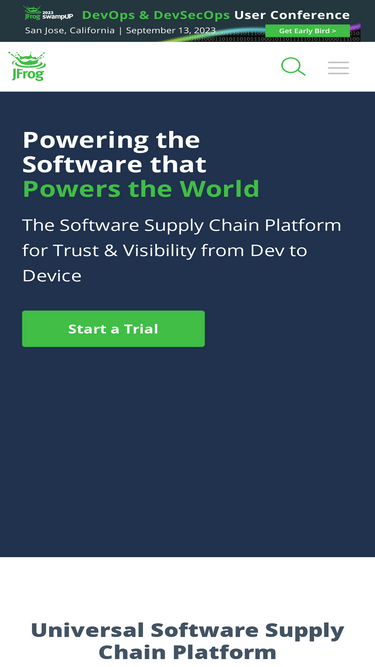 94%JFrog software supply chain solutions provide an end-to-end pipeline to control your binaries from build to production. Power your software updates to the edge.